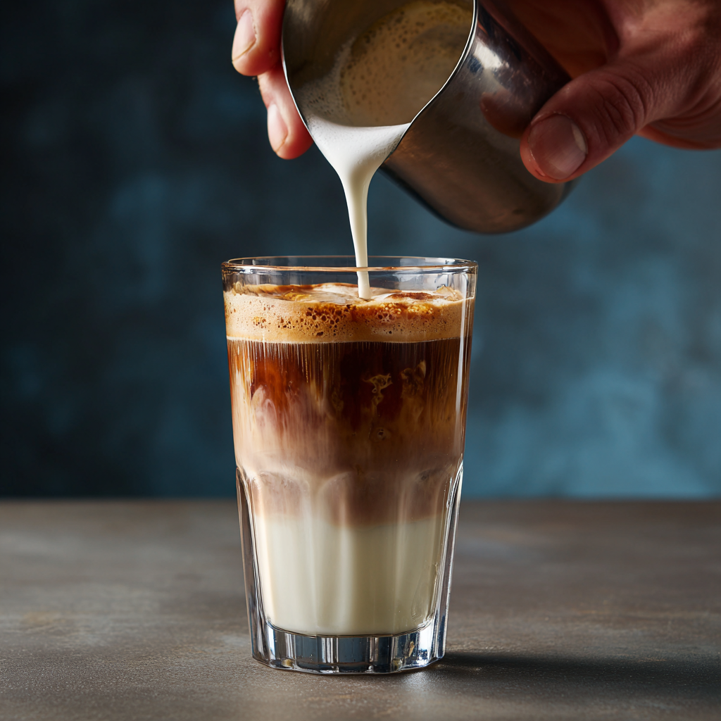 A dirty chai latte-style drink typically features a base of espresso, complemented by a distinct supplementary element, such as spiced chai tea in our case.
